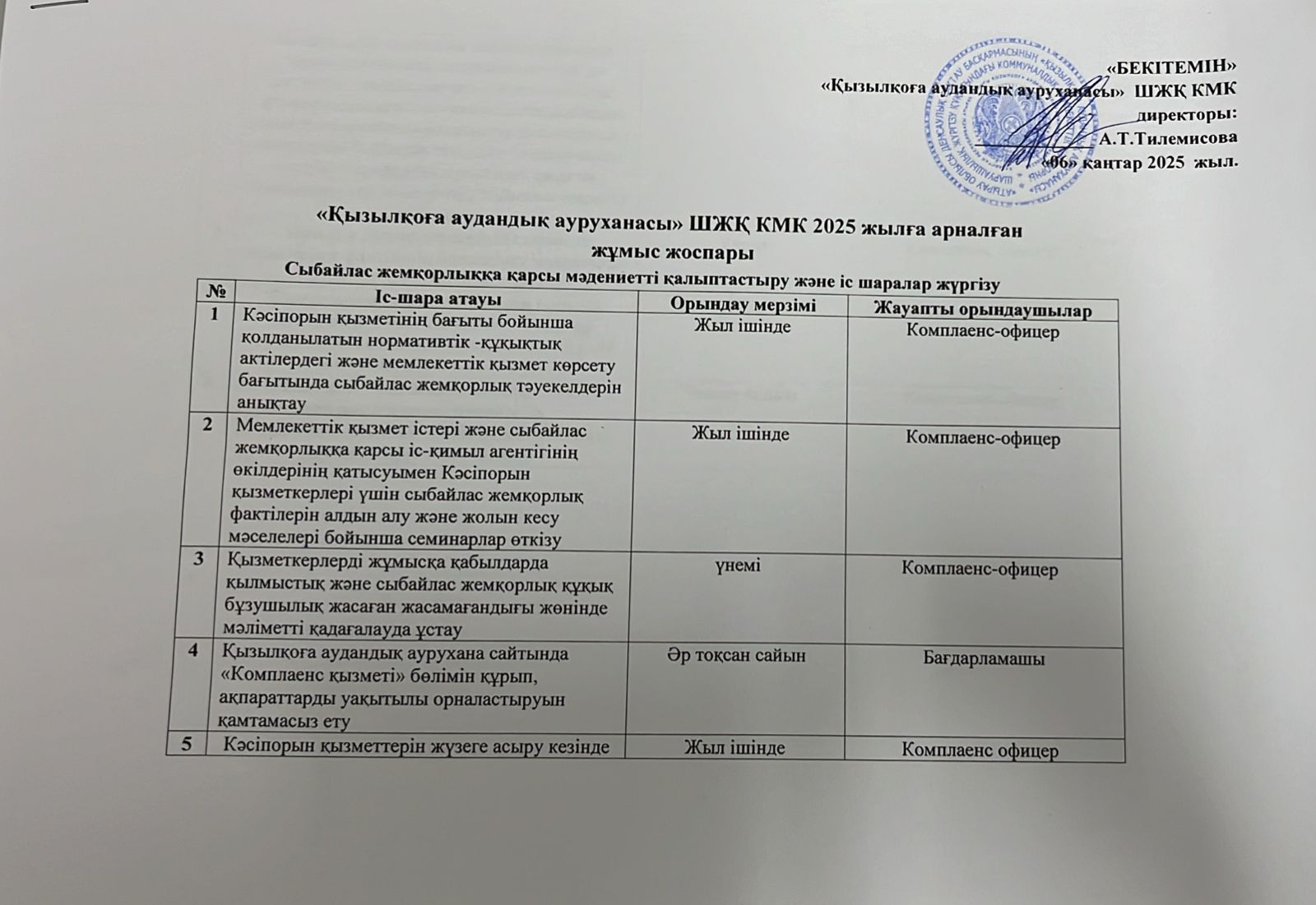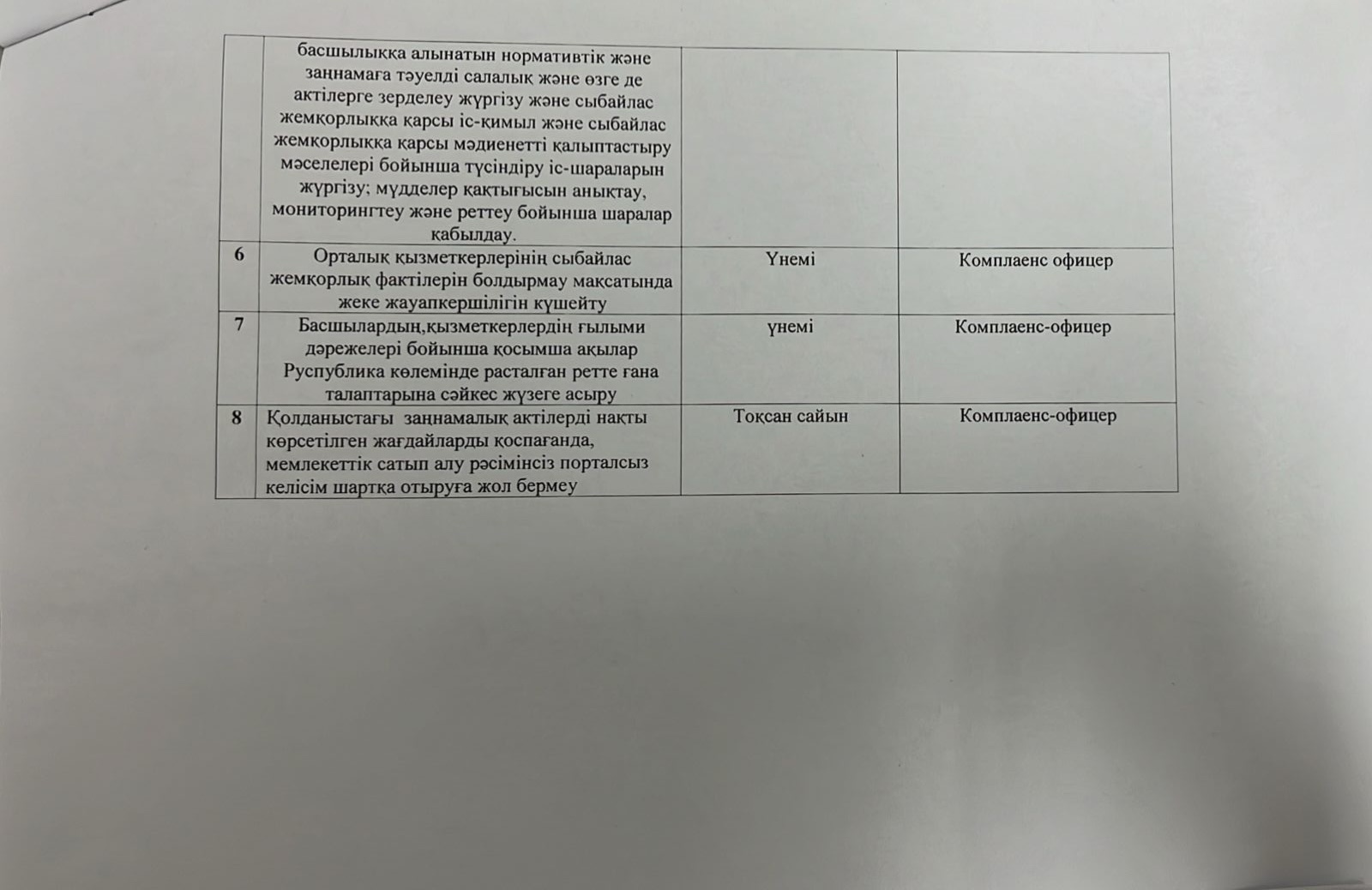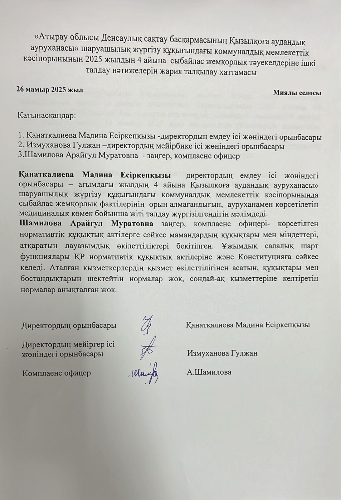 Сыбайлас жемқорлық тәуекелдерін ішкі талдаумен қамтылған кезең: 2025 жыл 4 ай